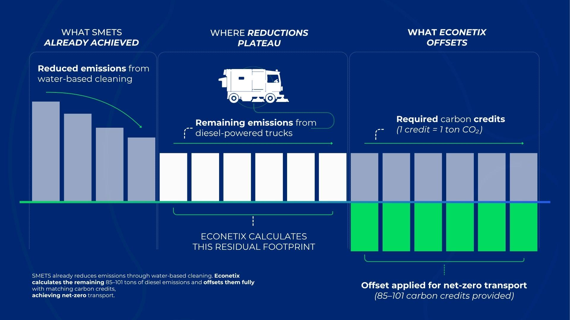- This upfront offsetting enables SMETS to sell trucks as fully carbon-neutral assets from day one, giving clients immediate sustainability benefits.